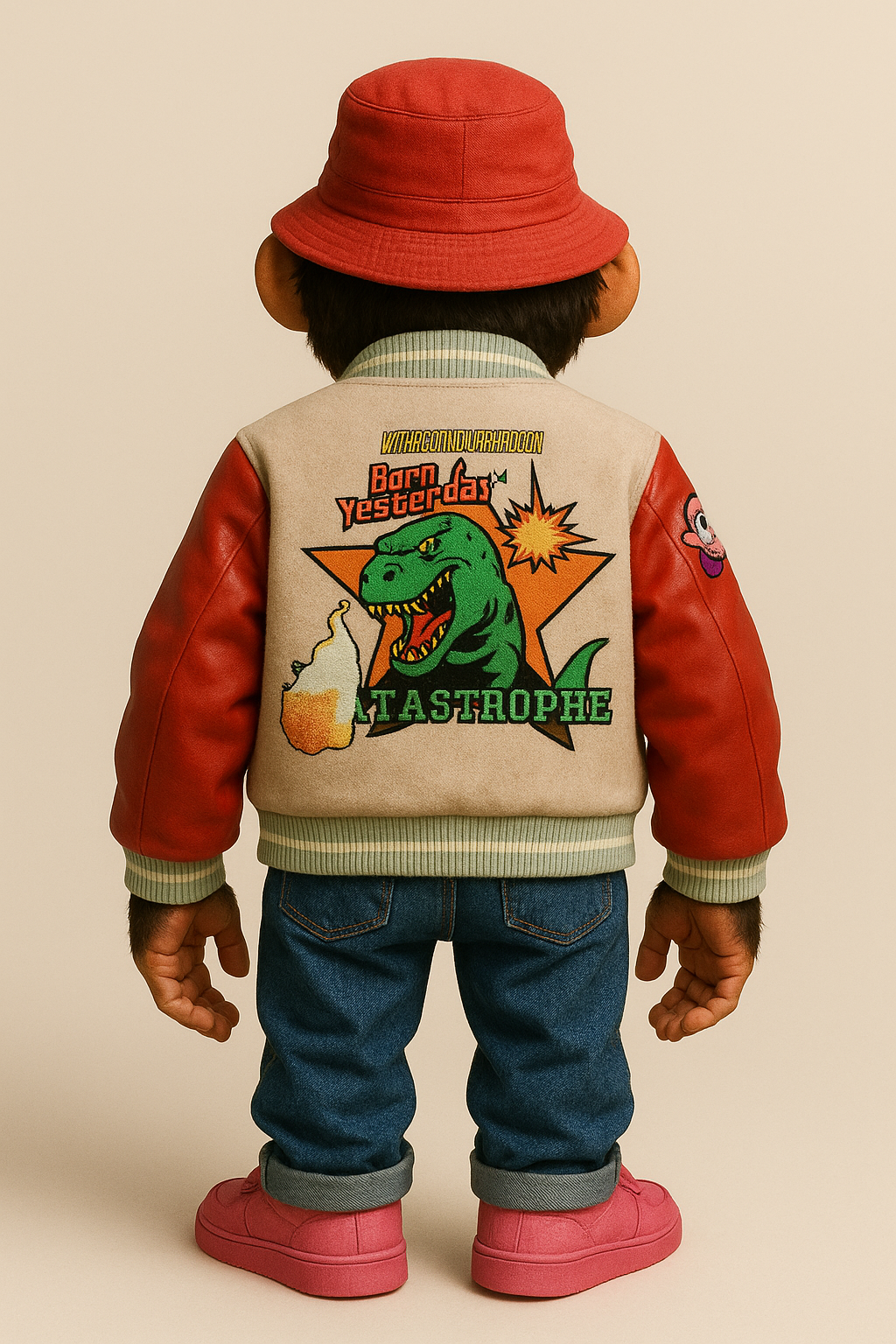 this is custom created includes sleep cat and freakazoid arm patches. Stitched Godzilla in comic style on the back and the kreature on the front.