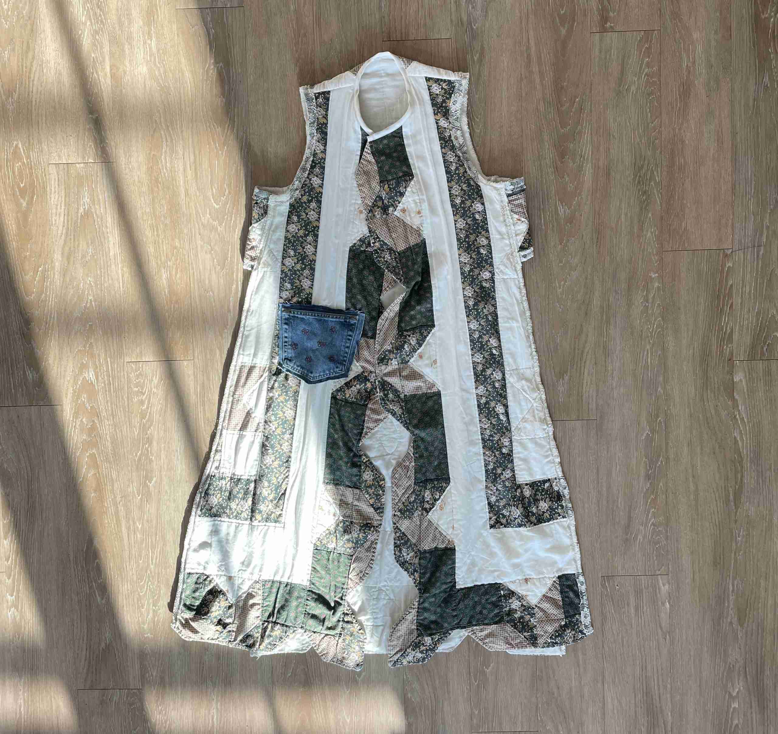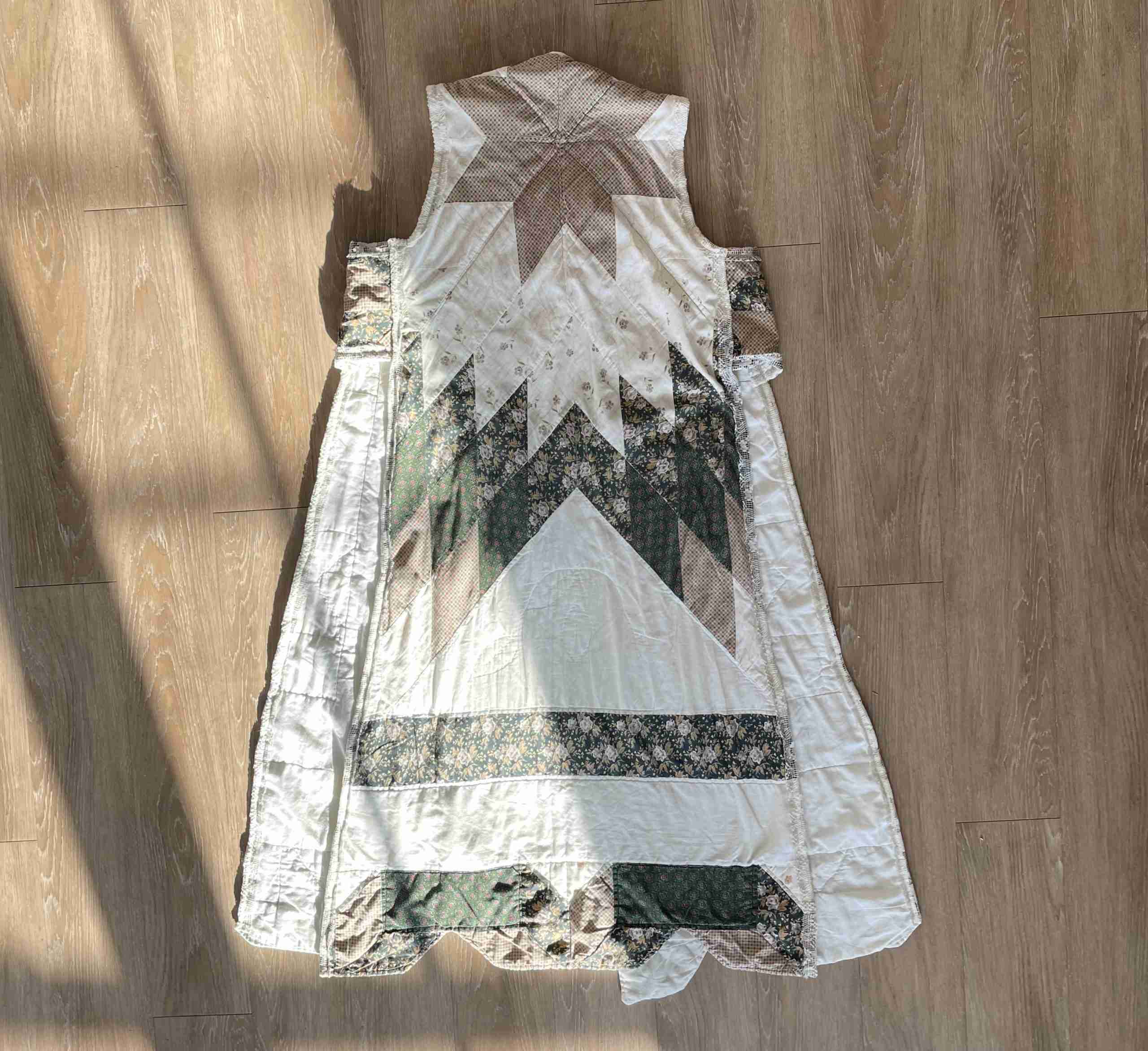 Category Tags, , , , , , Home » Shop All Upcycled Clothing » All Types » Jackets » Cream & Olive Cottagecore Maxi Quilt Vest